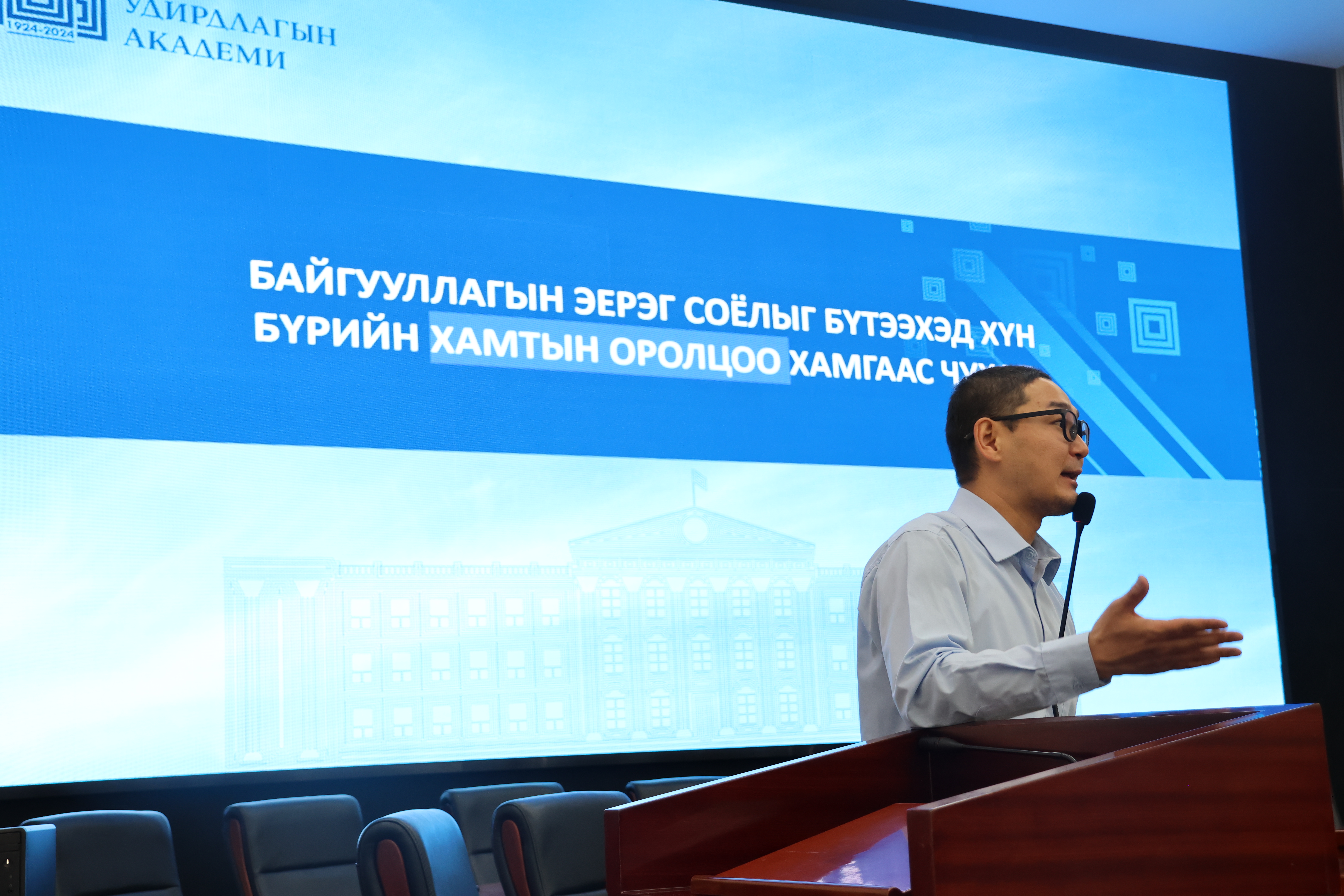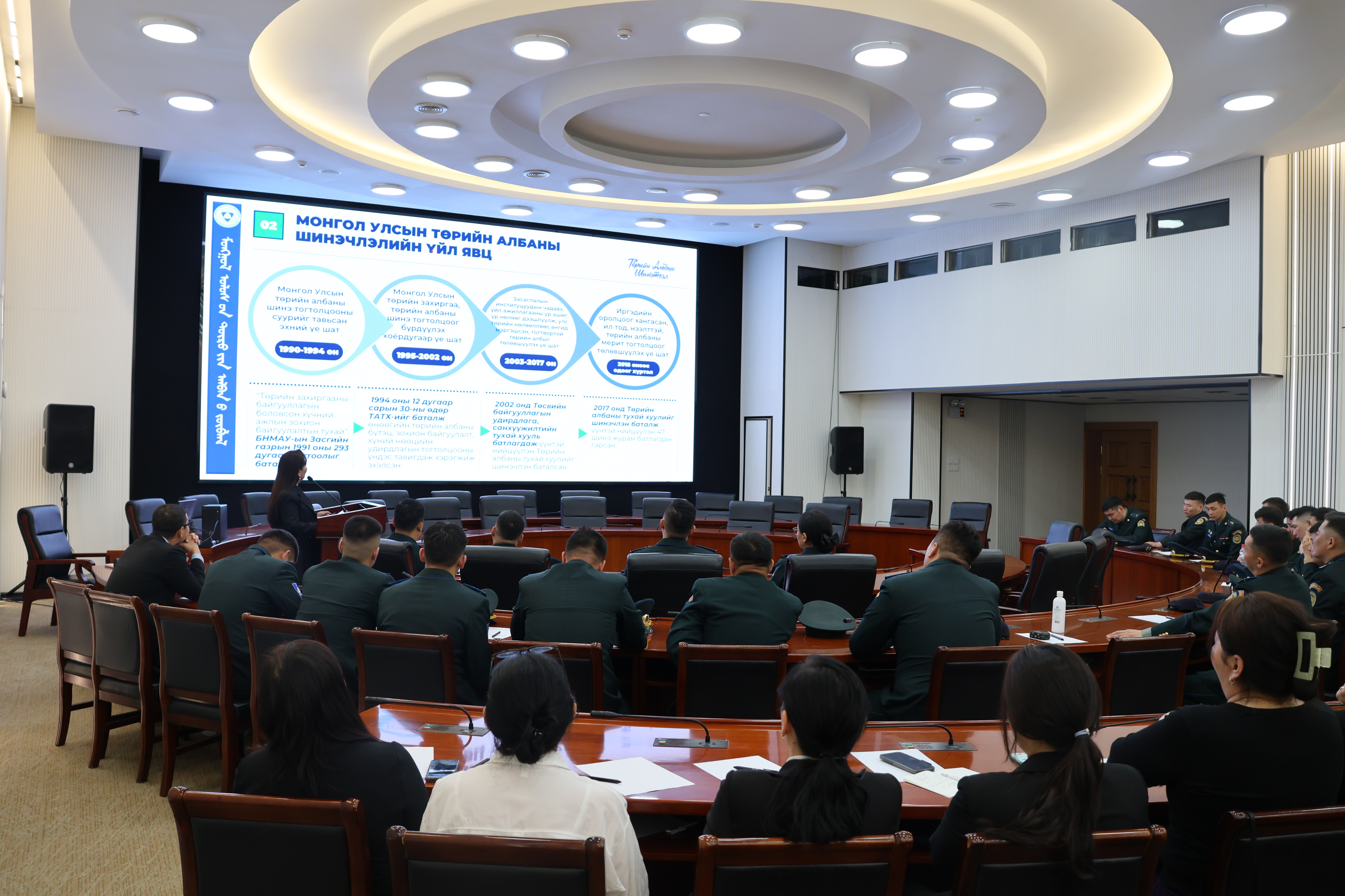 Төрийн тусгай хамгаалалтын газрын дэргэдэх Салбар зөвлөлийн баталсан “Шинэтгэлээр түүчээлсэн салбар зөвлөл” аяны төлөвлөгөөнд тусгагдсан “Төрийн албаны шинэчлэл, үе шат, сургамж” сэдвээр Монгол Улсын Төрийн албаны зөвлөлийн Хүний нөөцийн удирдлага, аудитын газрын ахлах референт, Д.Нармандах, “Байгууллагын соёл ба ёс зүй” сэдвээр Удирдлагын академийн Хүний нөөцийн удирдлагын тэнхимийн ахлах багш, доктор, Т.Төмөр нарыг урьж Төрийн тусгай хамгаалалтын газрын албан хаагчдад 2025 оны 05 дугаар сарын 12-ны өдөр сургалт, мэдээлэл хийж, төрийн албаны шинэчлэл болон байгууллагын соёлыг бүрдүүлэгч хүчин зүйлийн талаар харилцан ярилцлаа.